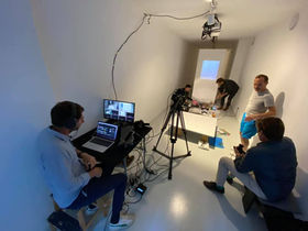 Comme aime le faire le metaxu dans les brèches de sa programmation, parquet flumant est une proposition des artistes du metaxu, un espace où le visiteur danseur interagit avec les lattes connectées du parquet. Dans l’espace réduit de l’entrée du metaxu la machine à fumée transforme nos présences en silhouettes dansantes.