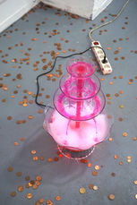 Lors de ses recherches au metaxu, Julie engage une réflexion sur les objets symboliques du pouvoir, ici la fleur de Lys. A la fois sceptre et lance, cette pique aux allures ornementales nourrie des pigeons sur une place de Toulon. Des Lys au sol, dans des bouteilles d’eau en plastique, s’altère d’un liquide rouge sang. Du sang que l’on retrouve en larmes sur l’artiste, suite au geste, utilisé en manifestation contre les gaz lacrymogènes, de se rincer les yeux avec du sérum physiologique. Hommage à l’artiste Ana Mendieta, qui, en 1973 tourne Sweating Blood. Cet ensemble de pièces résonne les unes avec les autres, comme un cri du coeur, un sanglot d’une époque. Entre obscur et espoir, c’est un espace de doutes qui se dégage, un espace trouble. On entend d’ailleurs le son d’un cœur qui bat en arythmies.