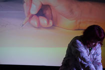 Cette inflexion du dessinateur vers le papier est une posture que le spectateur accompagne de son regard toute la durée du festival.